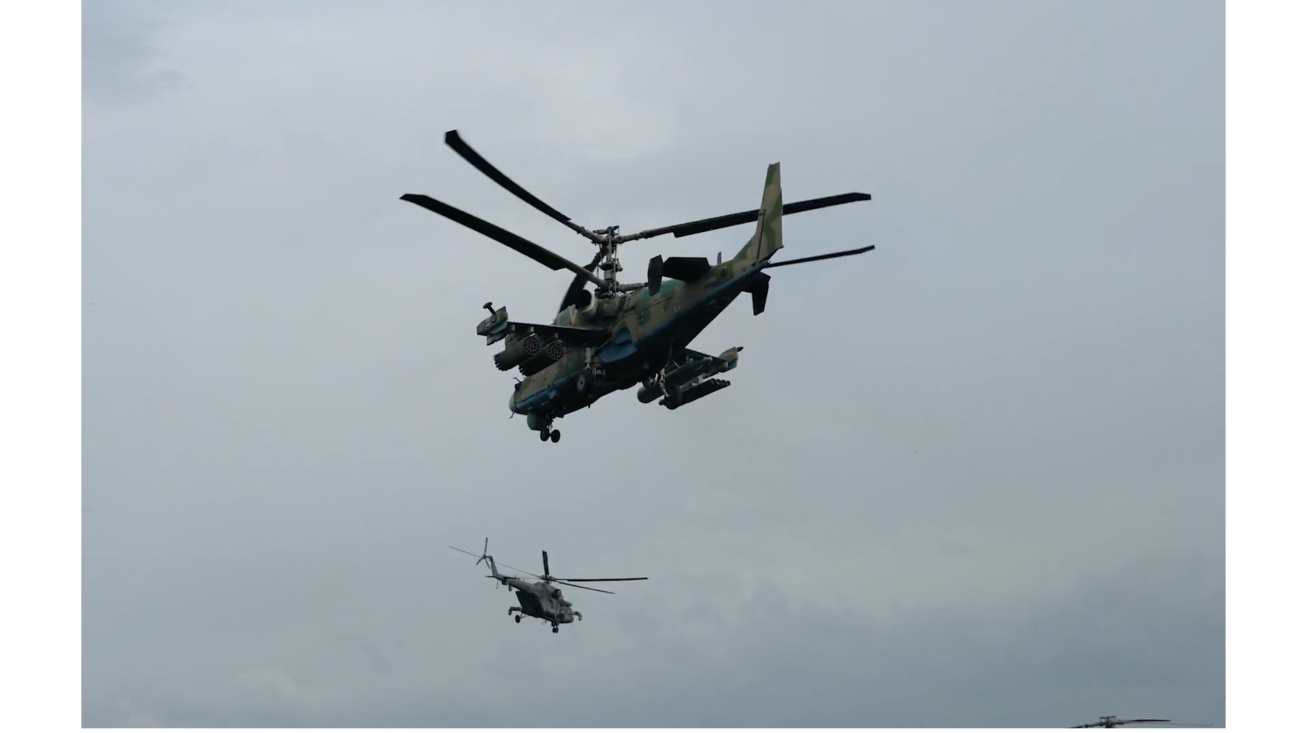 Минобороны РФ показало кадры нанесения ударов экипажами вертолетов Ка-52 по объектам ВСУ