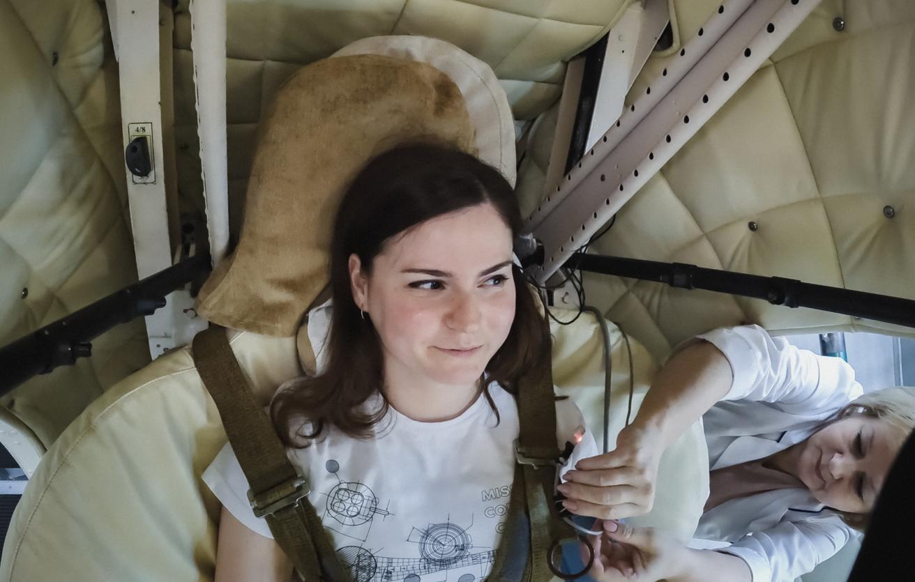 "Перед вами тут как раз Николай Чуб (космонавт отряда Роскосмоса — прим. ТАСС) вращался", — встретила нас медицинский сотрудник Ирина Коновалова. С порога она настроила нас на то, что все будет хорошо, в итоге от волнения не осталось и следа. Нас научили дышать животом и сопротивляться перегрузкам, обклеили датчиками, чтобы в процессе контролировать состояние организма.