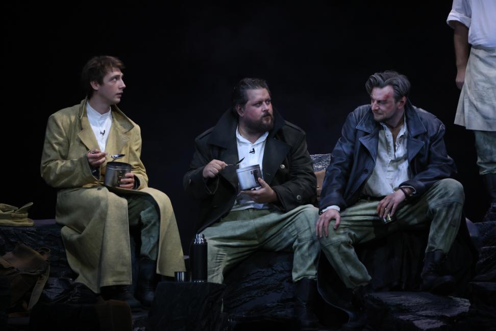Отвечая на вопрос ТАСС о том, как участники этой пьесы готовились к ролям, актер Максим Керин сказал: "Мы изучали это время, изучали конкретные исторические события и даты. Но, что мне очень нравится, — мы отошли от такой формы, грузной как бы — "что мы сейчас все в одном порыве…". [Удалось] именно показать тех же людей, только там [на войне]. И мне кажется, что акцент сделан был правильно именно на людях, только в других обстоятельствах. И на том, как люди проявляются в этих обстоятельствах".