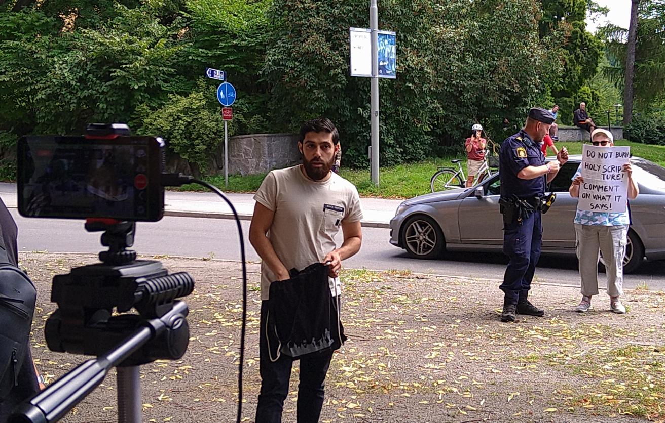Акцию провел 30-летний мужчина. В своей заявке на манифестацию он написал, что это ответ на сожжение Корана возле мечети Стокгольма 28 июня и "символическое собрание ради свободы слова".