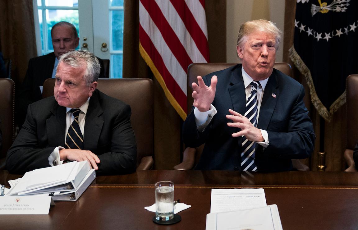 Первый заместитель госсекретаря США Джон Салливан и президент США Дональд Трамп