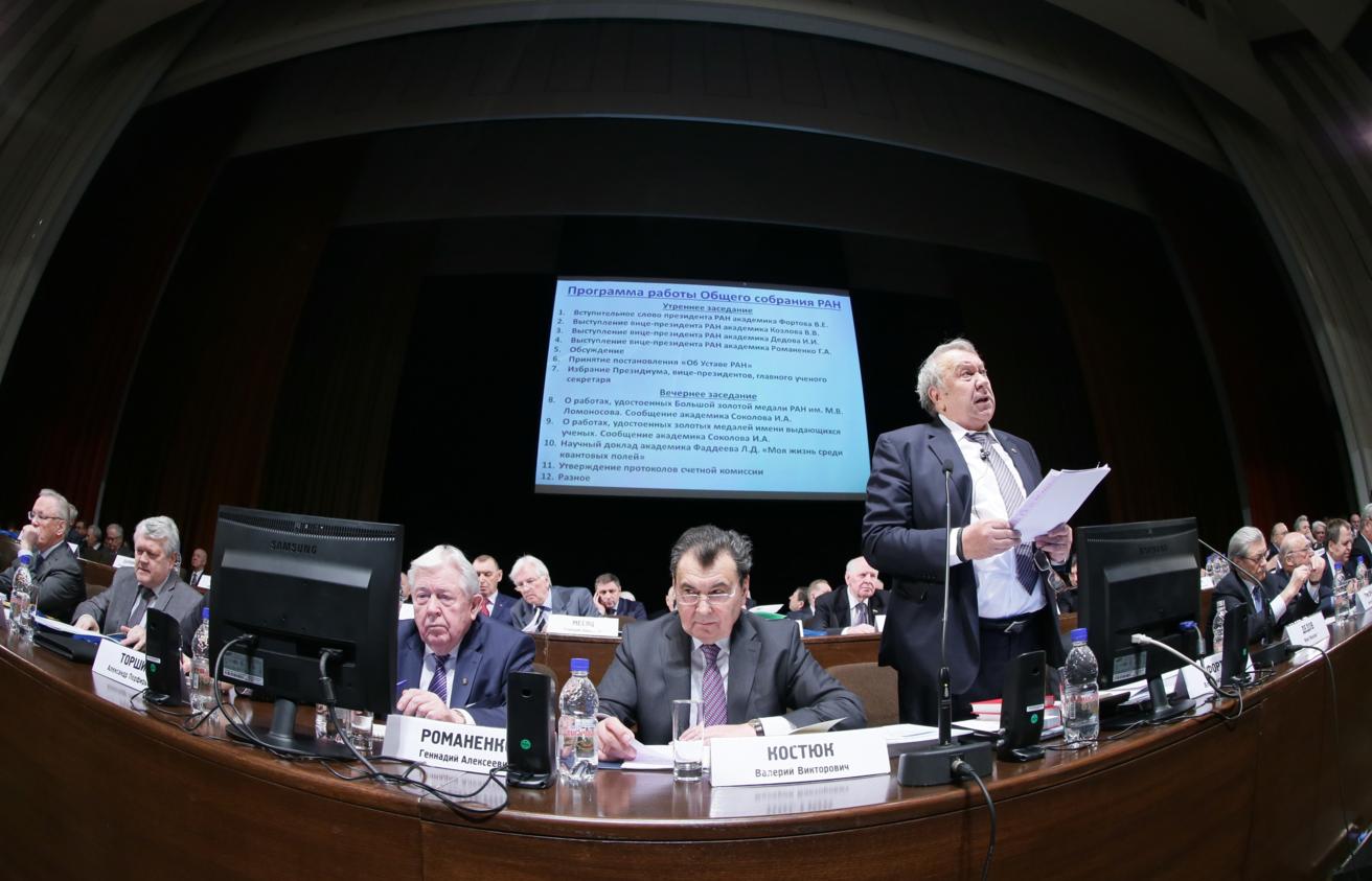 Общее собрание РАН продолжает работу. В первой половине дня был принят новый устав объединенной академии. Как ранее отмечал президент РАН Владимир Фортов, принятие устава необходимо, поскольку он отражает перемены, происшедшие в российской академической науке в ходе реформы за последний год.