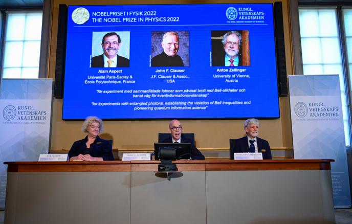 СТОКГОЛЬМ, 4 октября. /ТАСС/. Нобелевская премия в области физики 2022 года присуждена группе ученых - французу Алену Аспе, американцу Джону Клаузеру и австрийцу Антону Цайлингеру. Об этом объявил во вторник Нобелевский комитет Королевской академии наук.