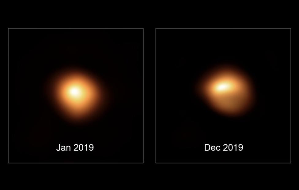 Анимация, которая показывает, как яркость Бетельгейзе изменилась с января по декабрь 2019 года. Credit – ESO/M. Montargès et al