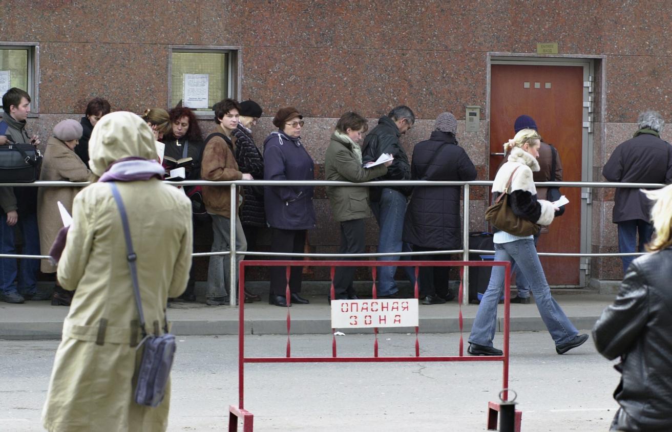 Очередь во французское посольство, Москва, архив