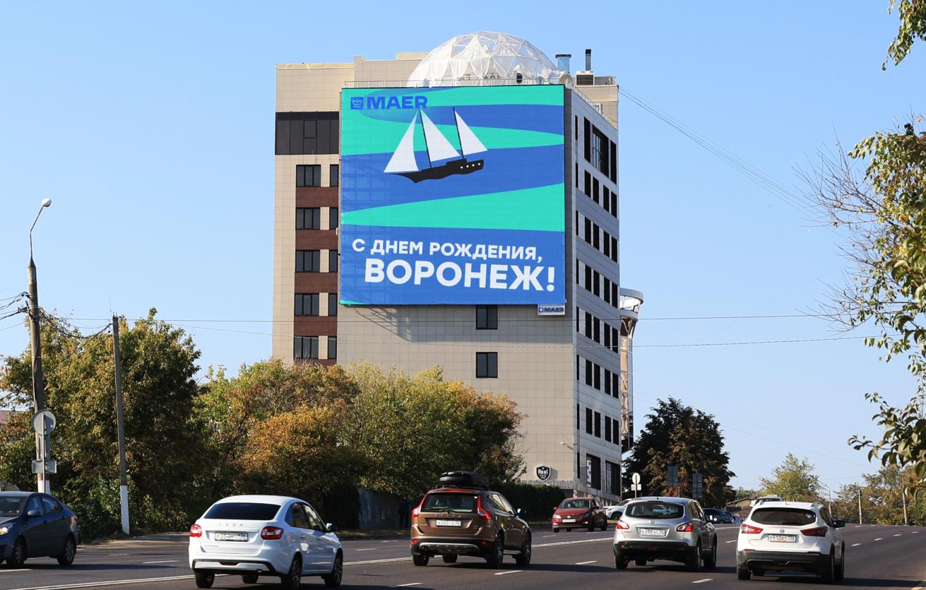 В Воронеже открылся новый современный медиафасад площадью 500 квадратных метров - он стал крупнейшим в городе. С его запуском МАЕР получил дополнительную аудиторию в городе: порядка 500 тысяч человек в месяц. Это половина от миллионного населения столицы Черноземья. Большой и яркий медиафасад начал трансляцию в юго-западной части города на здании Дома быта на улице 20-летия Октября. Он гармонично вписан в городскую среду, перекресток перед ним - одно из самых оживленных мест в городе с большим пешеходным и автомобильным трафиком. Поблизости находятся Воронежский цирк и торгово-развлекательный центр "Европа" - популярные точки притяжения горожан.