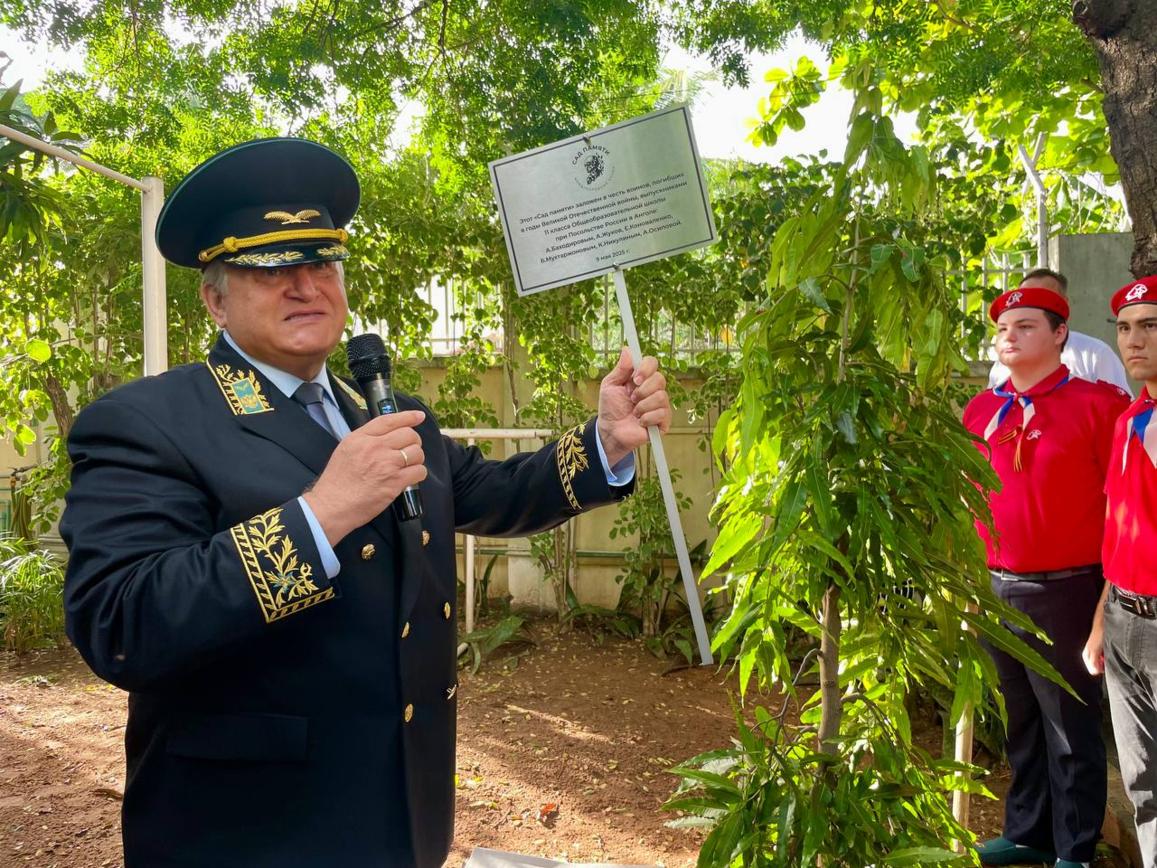 Посол РФ в Республике Ангола Владимир Тараров, обращаясь к участникам акции, призвал молодое поколение бережно хранить память о героях Великой Отечественной войны. "Поздравляю вас с этим светлым праздником! Мы передаем вам эстафету, призываем и просим нести память о предыдущих поколениях, завещаю вам продолжать эту инициативу и в следующем году. Пусть каждое посаженное выпускниками школы дерево символизирует нашу верность подвигу, принесшему Великую Победу".