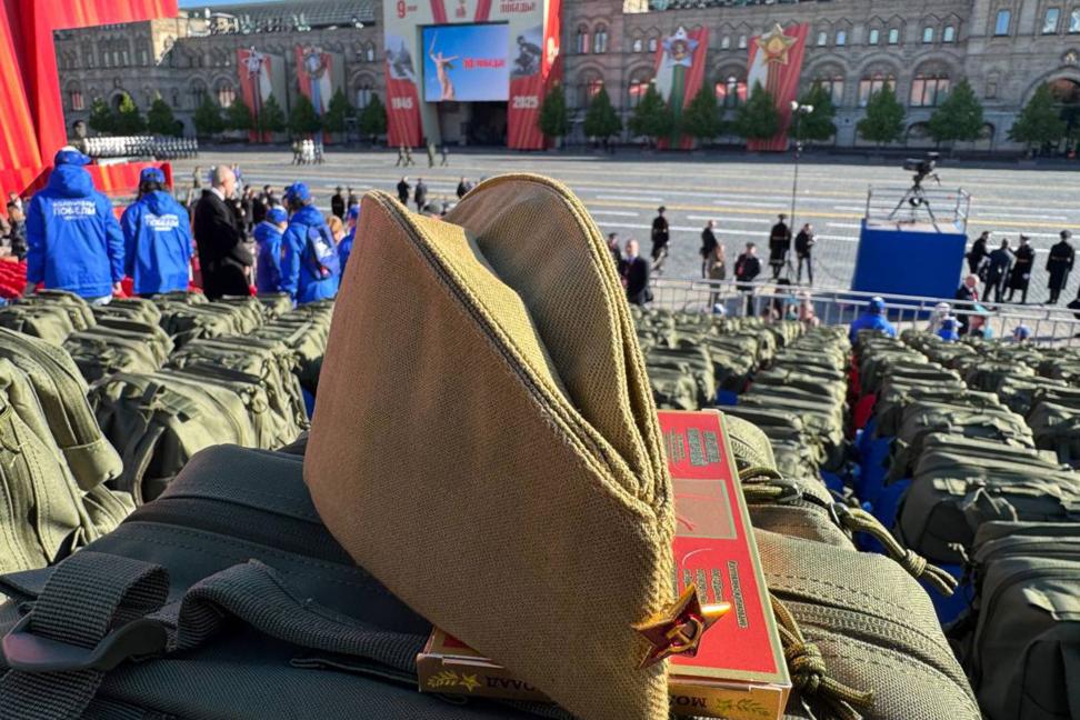 Организаторы парада в ознаменование 80-й годовщины Победы приготовили подарки для всех почетных гостей. Индивидуальные комплекты с подарочными наборами разложены по сидениям на трибунах у Кремлевской стены.