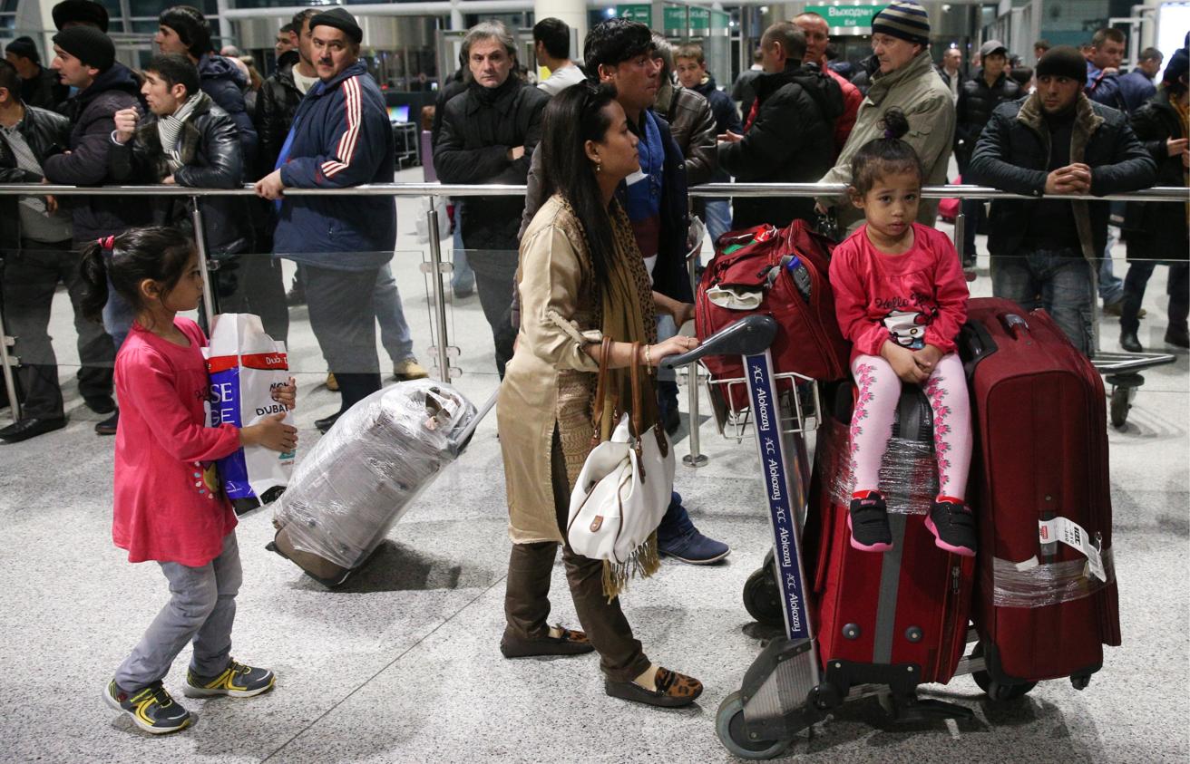 Российские туристы, летевшие последним рейсом компании "Оренбургских авиалиний" из Шарм-эш-Шейха, в аэропорту Домодедово, 1 декабря
