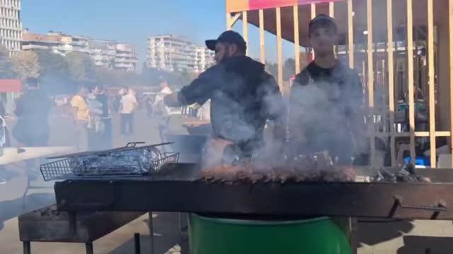 Внимание публики было приковано к поварам. Они создавали на своих импровизированных кухнях осенние блюда, созданные специально для фестиваля "Яблочный джем" - манты с тыквой, кавказский шашлык с добавлением различных соусов, плов с айвой.