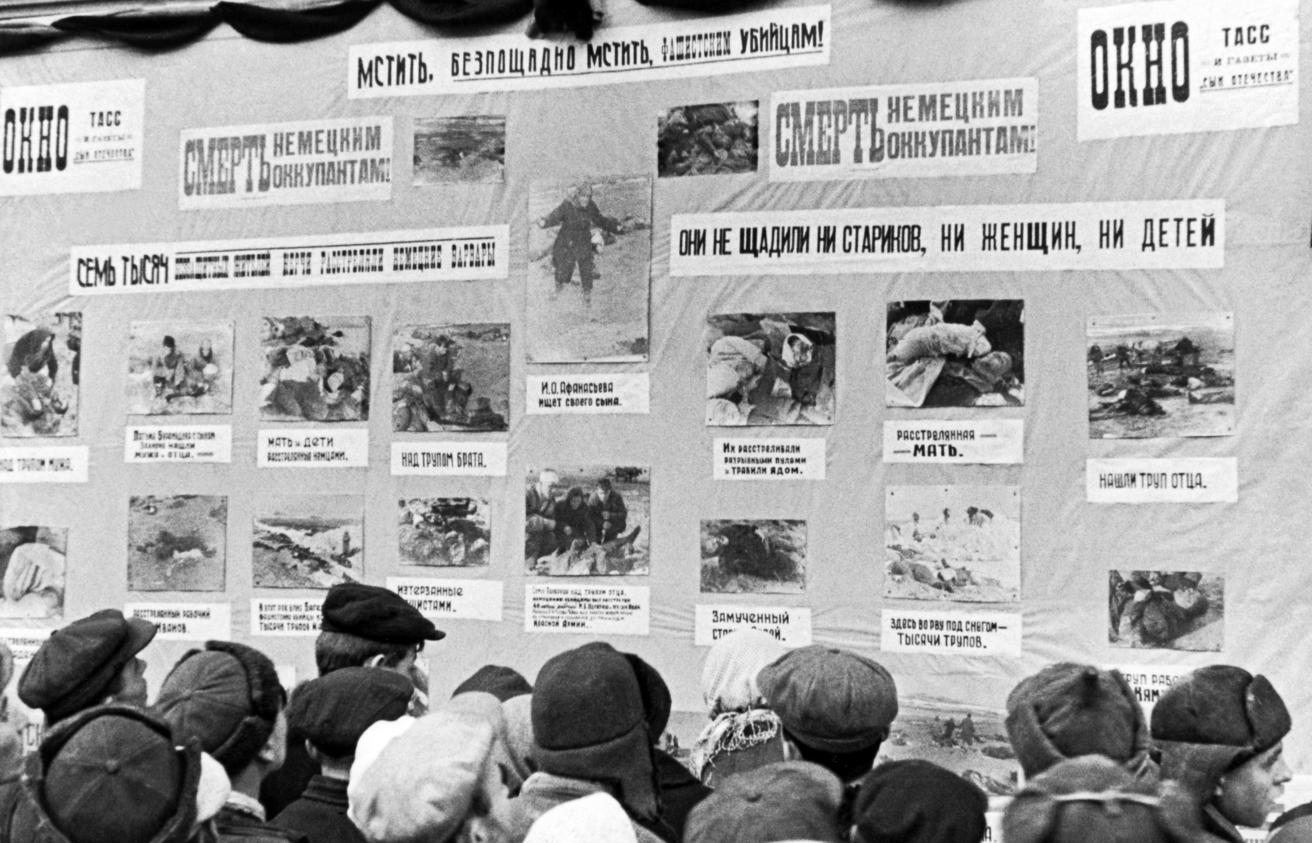 После разгрома фашистов под Москвой по просьбе Комитета партизанского движения "Окна ТАСС" стали выходить в формате небольших листовок 30 х 20 см, чтобы активно распространяться участниками партизанских отрядов.