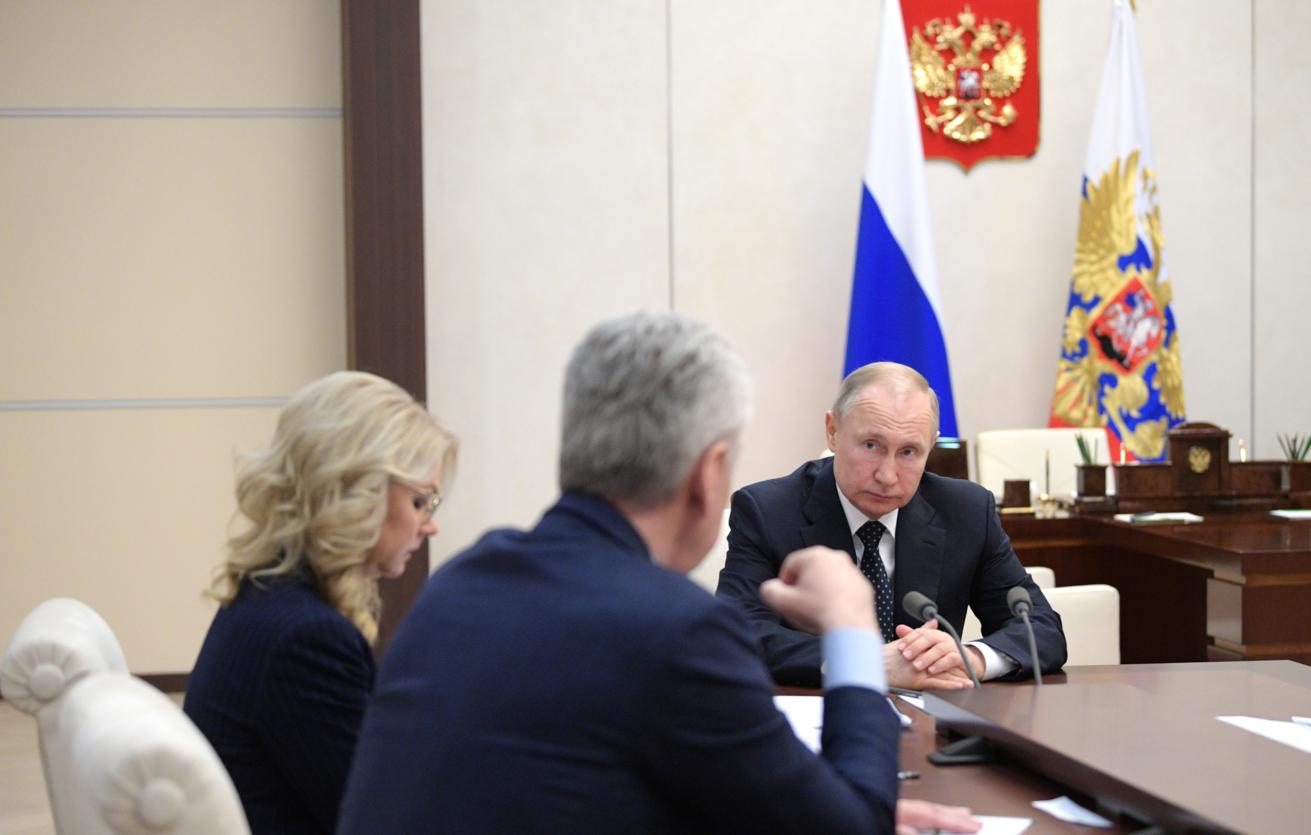 Вице-премьер РФ Татьяна Голикова, мэр Москвы Сергей Собянин и президент РФ Владимир Путин