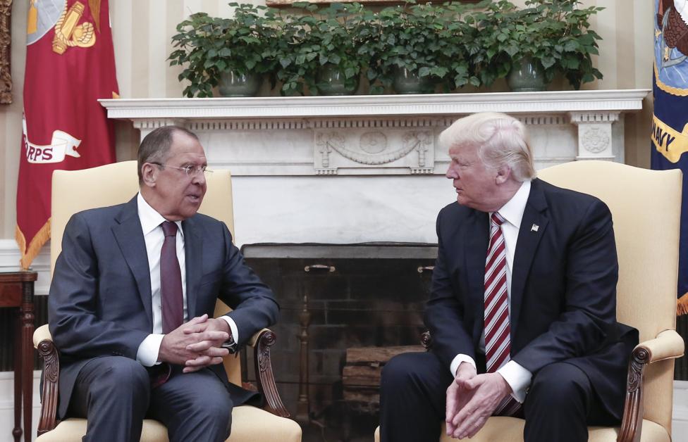 Министр иностранных дел РФ Сергей Лавров и президент США Дональд Трамп во время встречи в Белом доме