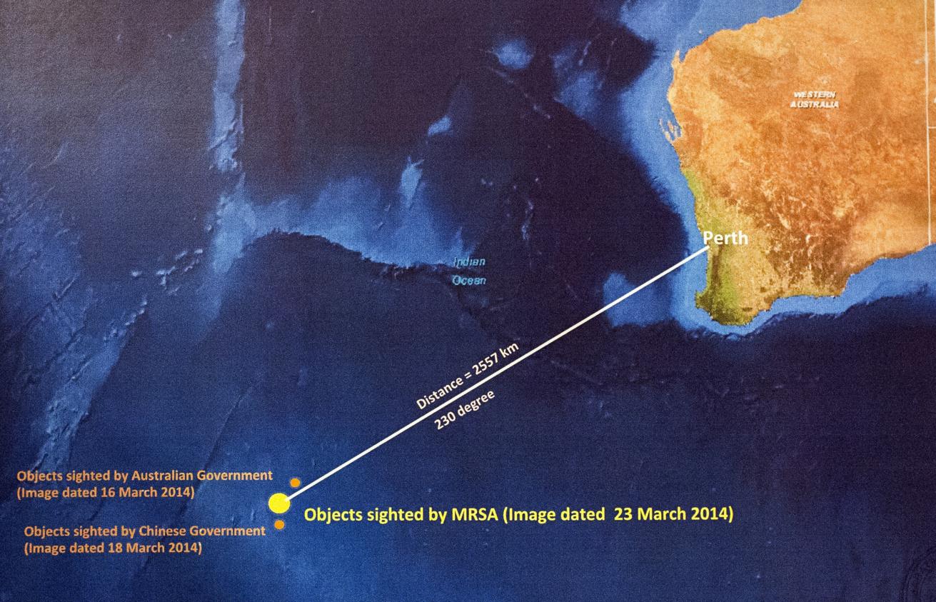 По словам исполнительного директора агентства Анонда Снидвонгса, объекты были найдены на расстоянии приблизительно 200 км от зоны поиска Boeing. Снимки со спутника будут переданы малайзийским властям.
