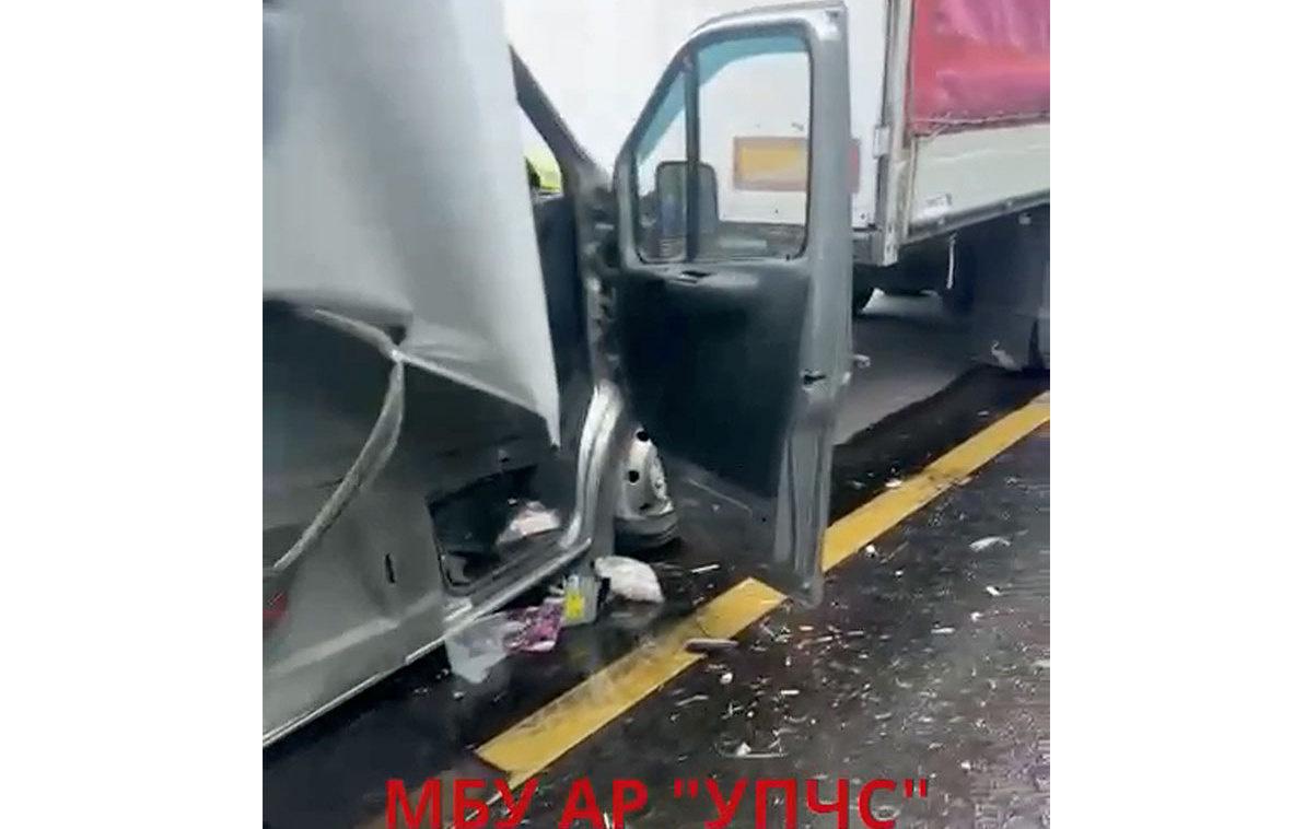 В Ростовской области "Газель" зажало между двух грузовиков